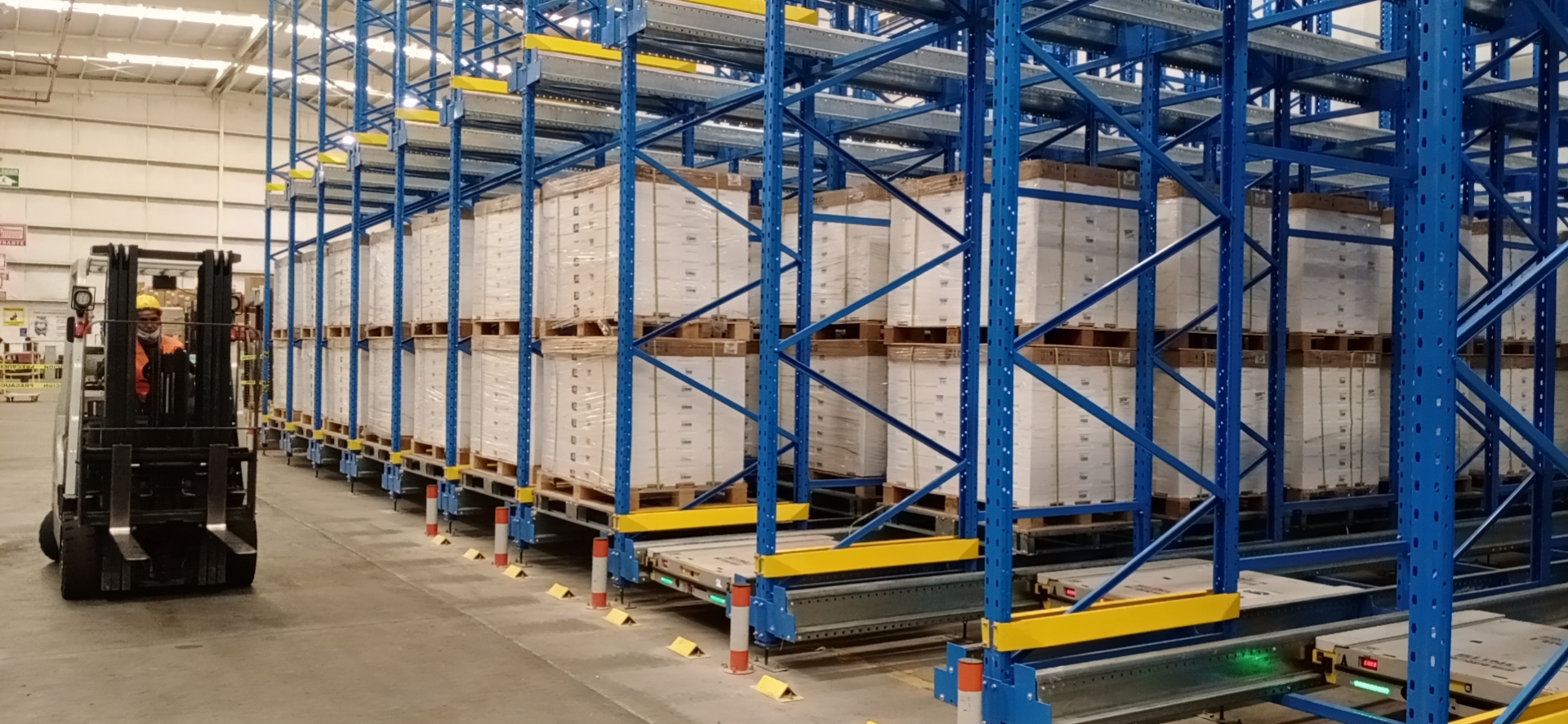 الرفوف الجديدة: مساحة تخزين كبيرة بها 3 طبقات أرفف بمساحة حوالي 385 م2، يمكن تخزين 375 منصة نقالة للبضائع.مساحة تخزين صغيرة بها 3 طبقات رفوف بمساحة حوالي 890 م2يمكن تخزين 1155 طبلية من البضائع.